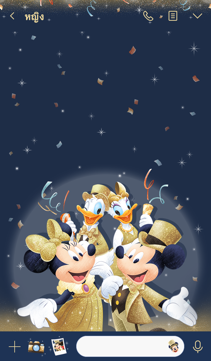 Comment: Mickey and Friends Sparkling Party. Mickey and his friends are throwing a bright and shiny party with this dazzling theme! Their gold costumes and accessories add a glamorous touch to all your LINE screens! Updates supported for 180 days after sales end.