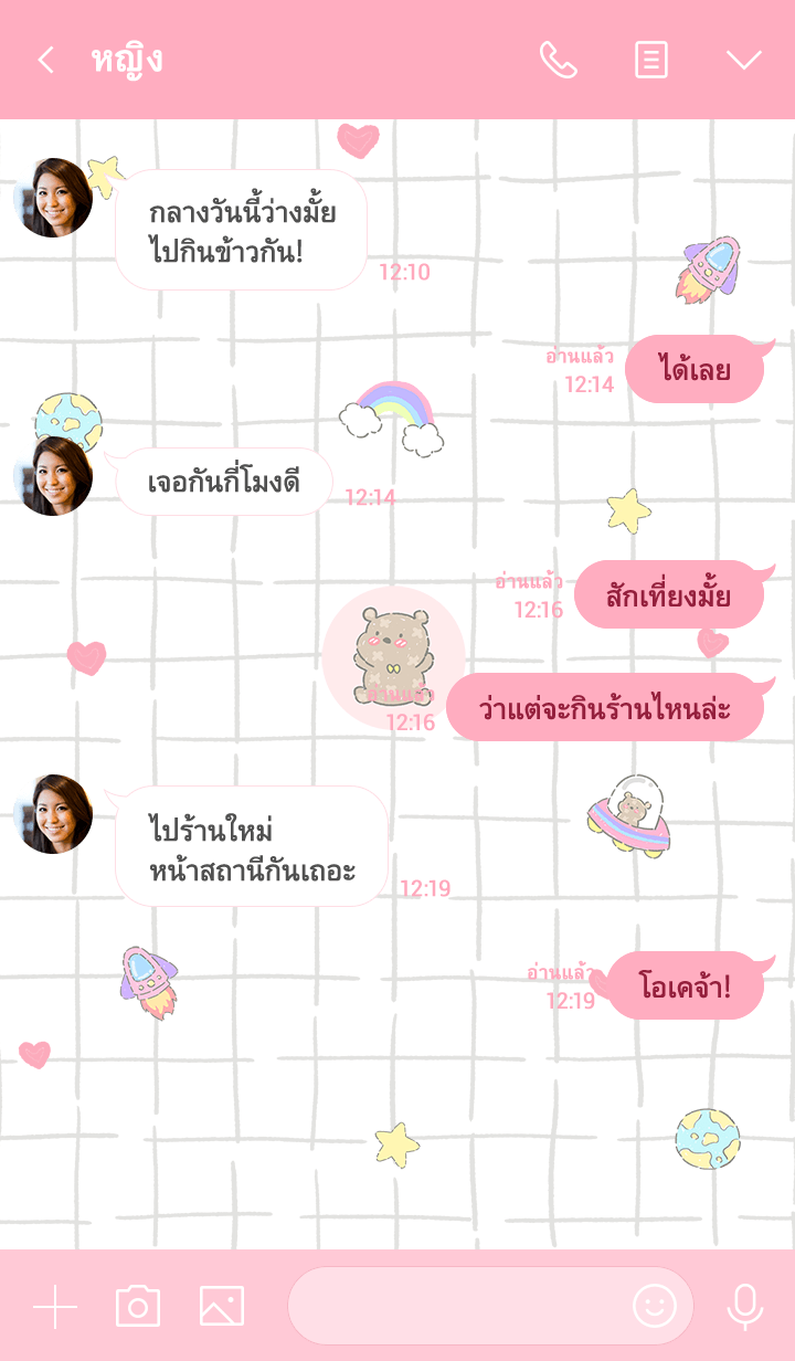 ธีมไลน์หมูดื้อในกาแลคซี่ สีพาสเทล |