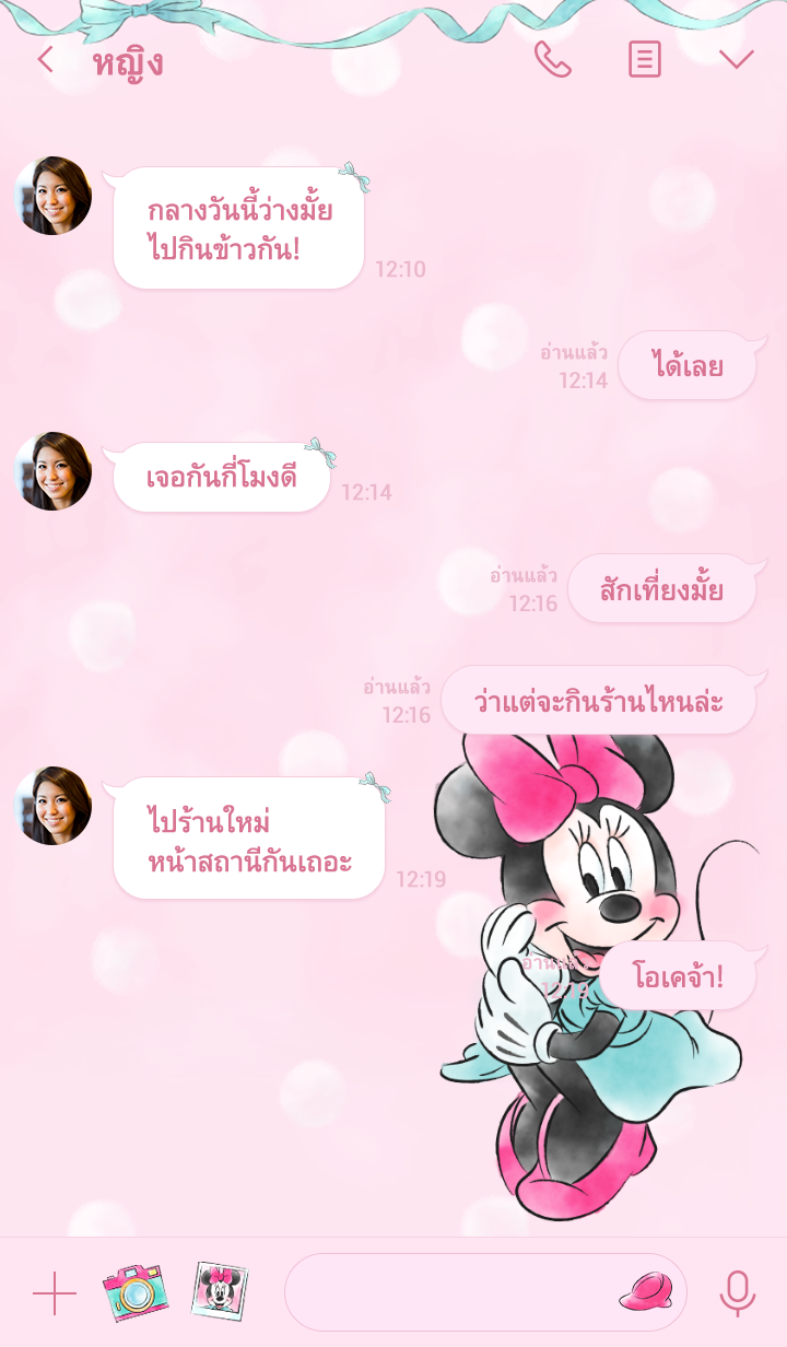 Comment: Minnie Mouse: Cute in Pink. Minnie is in her happy place with this LINE theme featuring plenty of pink! There's also a mint-colored theme available to help keep your screens looking fresh! Which one will be your favorite? Updates supported for 180 days after sales end.