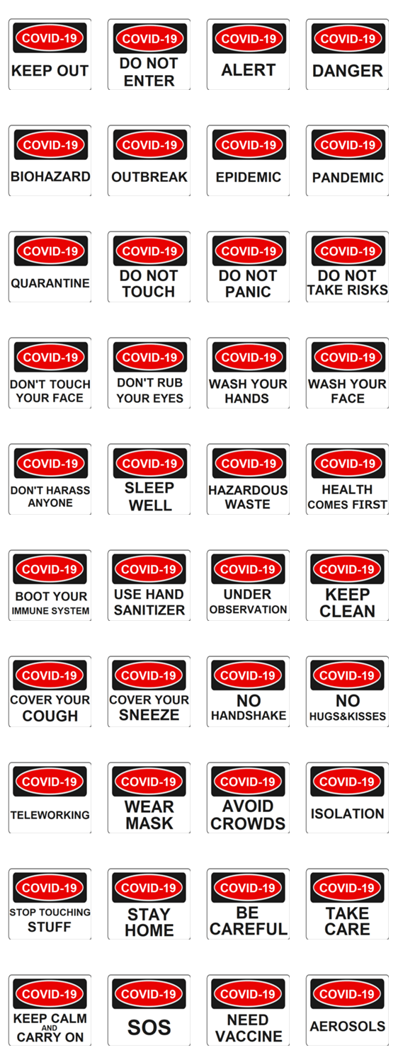 Alert COVID-19 Keep the Virus away. WASH HANDS COVER YOUR SNEEZE TELEWORKING NO HUGS & KISSES OUTBREAK PANDEMIC BIOHAZARD QUARANTINE KEEP CALM AND CARRY ON