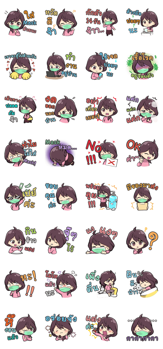 Comment: Ploysai-anti-virus Covid-19. Nong Ploysai will represents your care for you and your friends to fight Covid-19 togethe.