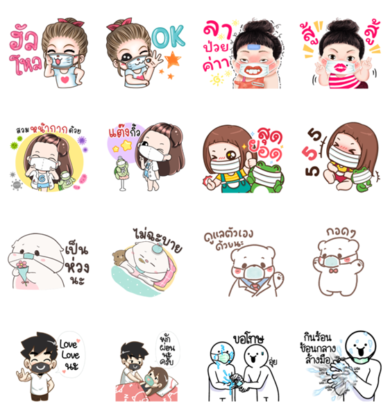 Comment: LINE STICKERS : Be Healthy by LINE Thailand. Special LINE STICKERS set from 8 top creators that motivate everyone to take good care of themselves and those around them for good health. Available until April 19, 2020. สติ๊กเกอร์ไลน์ โคโรน่าไวรัส covid-19 (โควิด-19)
