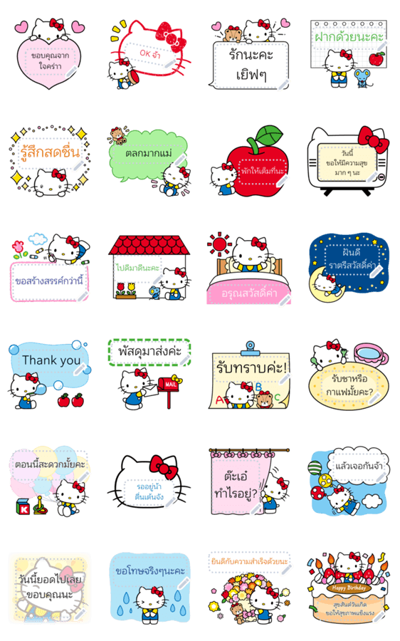 สติกเกอร์ข้อความจากเฮลโลคิตตีมาแล้วจ้า♪ พิมพ์ข้อความที่ต้องการใส่สติกเกอร์น่ารักแล้วส่งเลย แชทของคุณต้องสนุกขึ้นอย่างแน่นอน♪