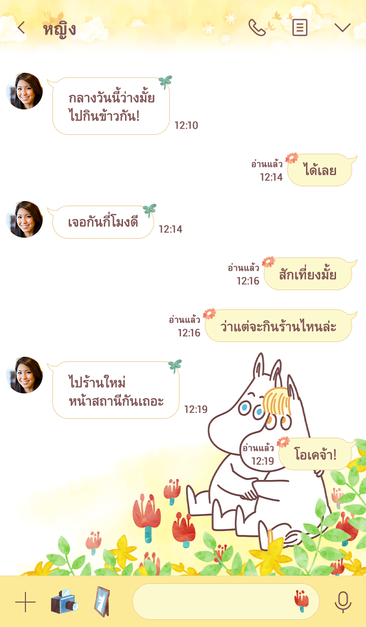 ธีมชุดอ่อนโยนด้วยลวดลายสีน้ำจากมูมิน รายล้อมด้วยดอกไม้ หน้าจอแชทของคุณจะอบอุ่นกว่าใคร♪ * จะมีการอัพเดตธีมเป็นระยะจนถึง 180 วันหลังสิ้นสุดการจำหน่าย