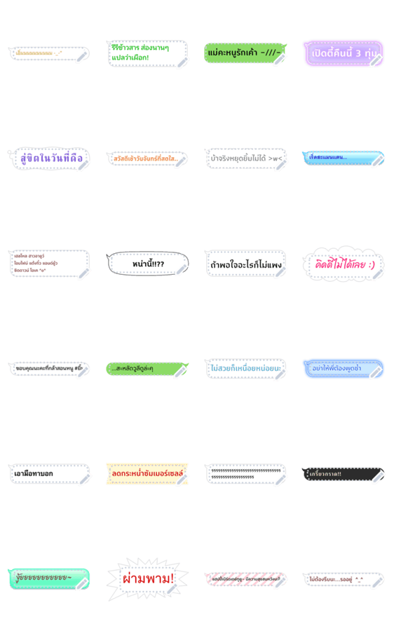 Comment: LINE Speech Balloon Message Stickers. Get ready for a LINE speech balloon revolution! Use these stickers to convey how you're feeling in a variety of fonts. Choose from various designs, including whispers and even brightly colored neon for when you really need to get your point across!