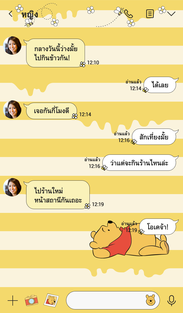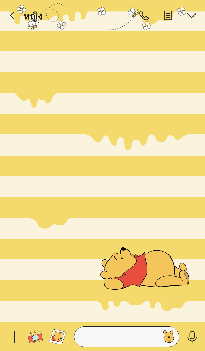 ธีมน่ารักจากหมีพูห์ผู้เลิฟน้ำผึ้งเป็นชีวิตจิตใจ ธีมชุดนี้เลยจัดให้หมีพูห์ได้อยู่ในดีไซน์ลายทางสีน้ำผึ้งน่าอร่อยสุดๆ♪ * จะมีการอัพเดตธีมเป็นระยะจนถึง 180 วันหลังสิ้นสุดการจำหน่าย