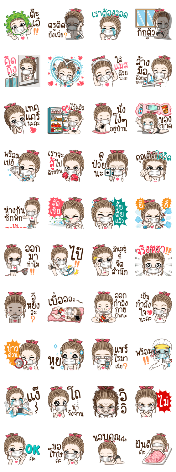 Comment: Drama Wife Take care. cute wife come back with mask.สติ๊กเกอร์ไลน์ โคโรน่าไวรัส covid-19 (โควิด-19)