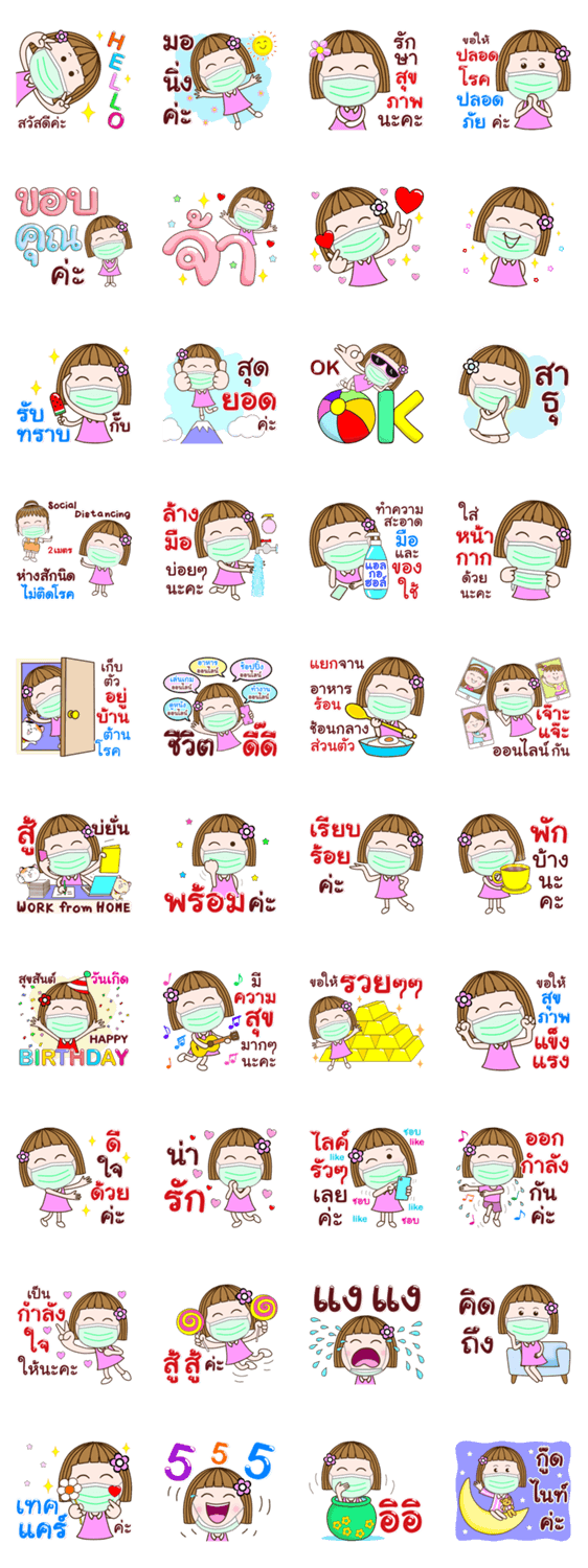 ร่วมต้าน ไวรัสโคโรน่า โควิด-19 กับสาวน้อย น่ารัก ใส่หน้ากากอนามัย ทักทาย สวัสดี ส่งความสุข รัก กำลังใจ ห่วงใย คิดถึง อวยพร ยินดี สุขสันต์วันเกิด! เทคแคร์ ทุกวัน