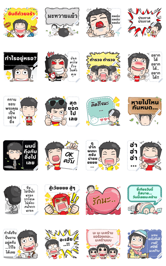 สติกเกอร์ข้อความ ก็เกรียนเกิ๊น มาแล้วนะพวกเรา รู้ป่าวว่าใส่ข้อความในสติกเกอร์แต่ละรูปไม่ซ้ำกันได้ด้วยนะ สนุกมากๆ ลองโหลดมาใช้กันเลย