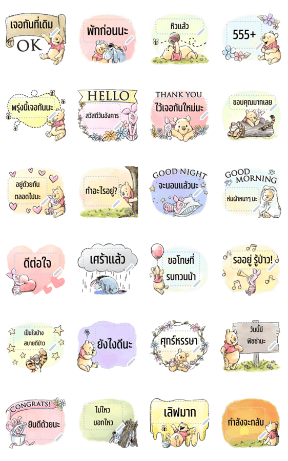 หมีพูห์กลับป่าร้อยเอเคอร์พร้อมกับสติกเกอร์ข้อความ! มาใช้สติกเกอร์ข้อความของหมีพูห์ในทุกวันเพื่อสร้างสีสันให้กับข้อความของคุณ!