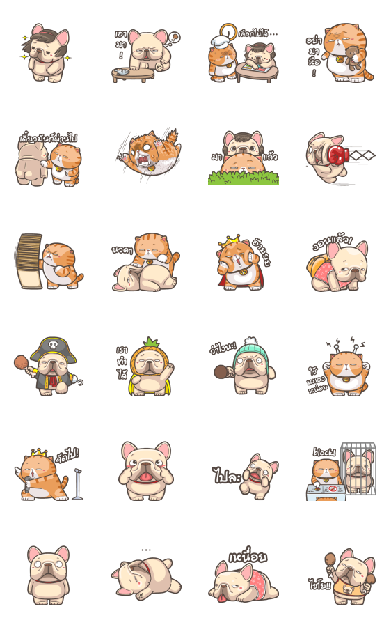 Comment: French Bulldog PIGU & Cat King MI-PON. The eleventh sticker set from a naughty French Bulldog PIGU and Cat King MI-PON.