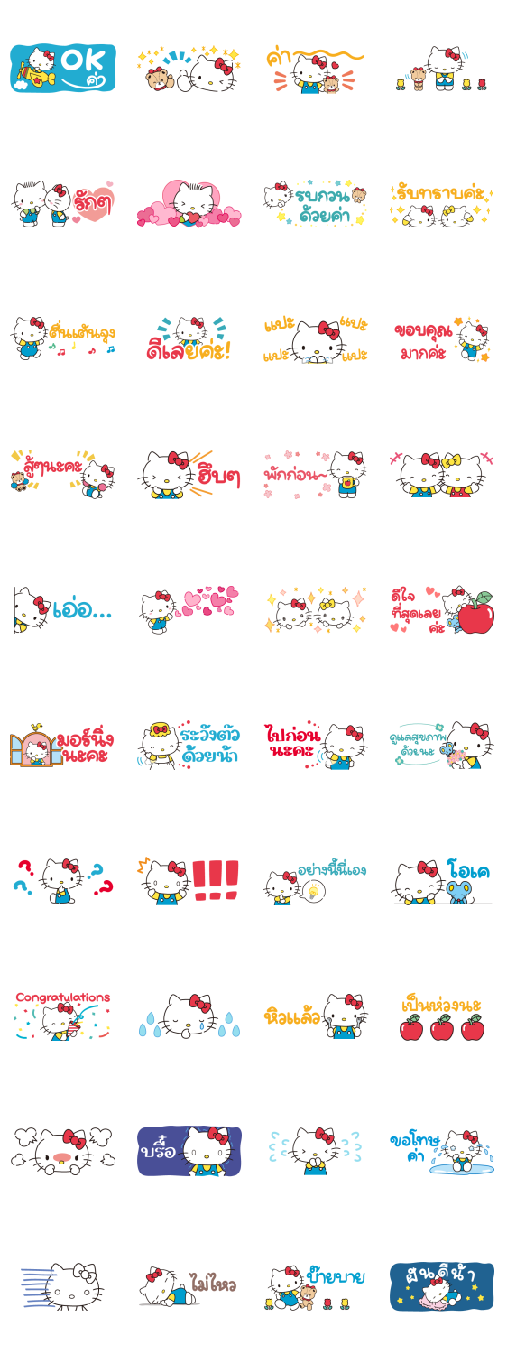 Comment: Hello Kitty Small Stickers. These delightful Hello Kitty stickers feature a small yet economical design! The polite messages and large text make them super easy to use in any occasion.