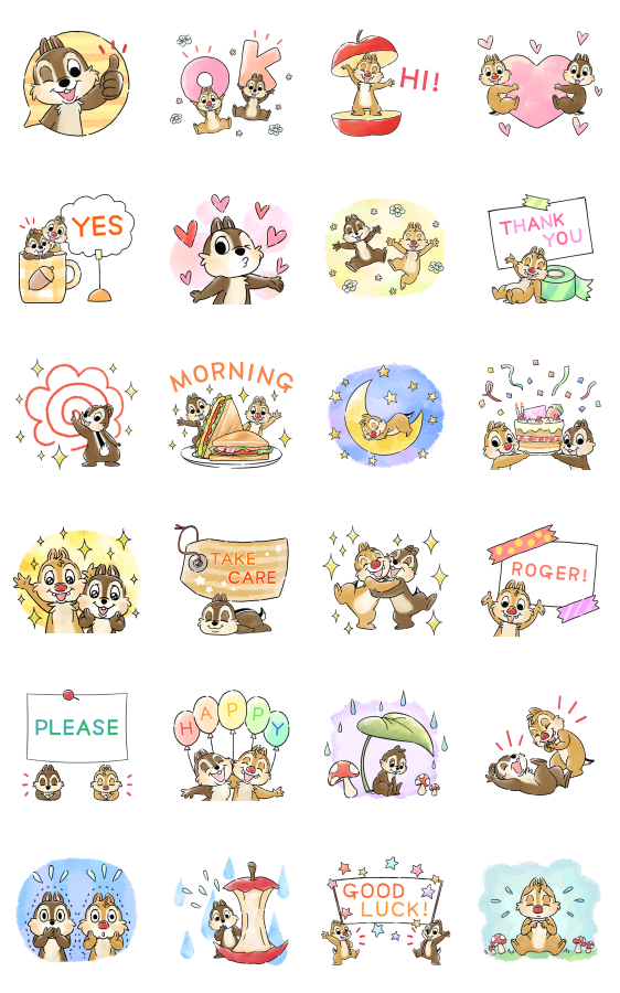 Comment: Chip 'n' Dale Pop-Up Stickers. The always chipper duo of Chip and Dale return with this set of humorous pop-up stickers. Whether you want to give thanks or just say hello, these adorable chipmunks have got you covered. The polite messages can be easily used with anyone to help energize your chats.