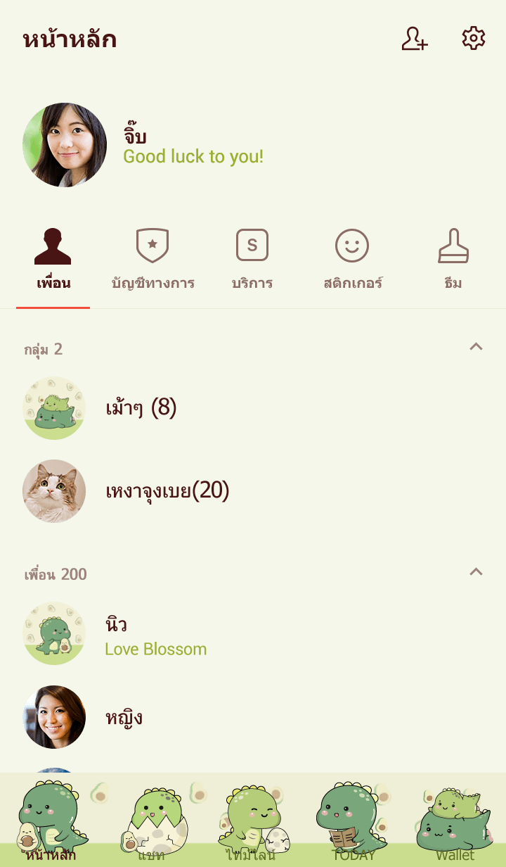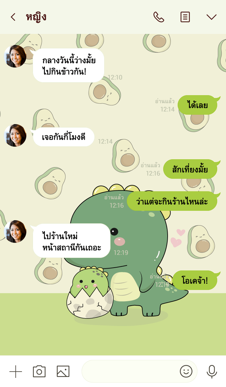 ธีมไลน์เจ้าไดโนเสาร์น่ารัก พาสเทลกรีน |
