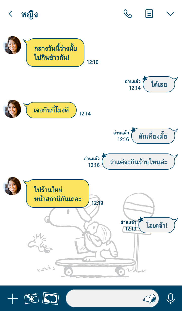 ธีม Snoopy สีขาวที่เต็มไปด้วยความสดใส เรามีธีมในสีกรมท่าด้วยนะ แวะดูได้เลย * จะมีการอัพเดตธีมเป็นระยะจนถึง 180 วันหลังสิ้นสุดการจำหน่าย