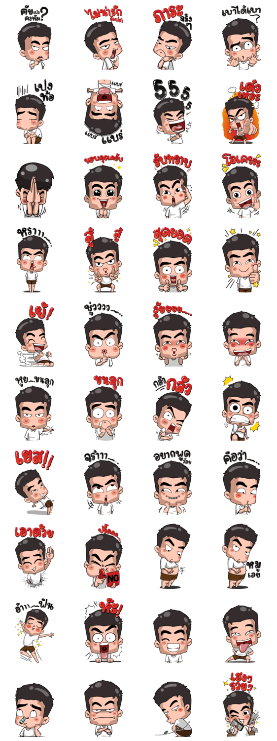 This funny guy and his big stickers are ready to poke you and your friends in chats! These stickers will show up extra large in chats. บิกสติกเกอร์