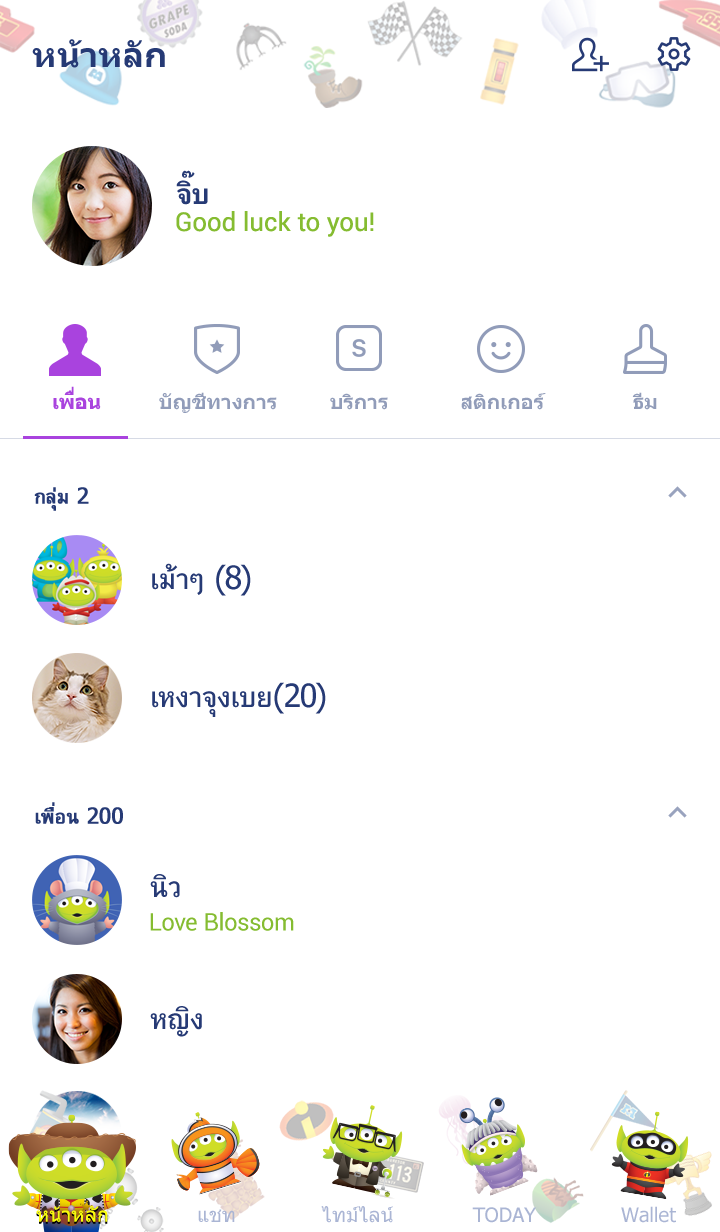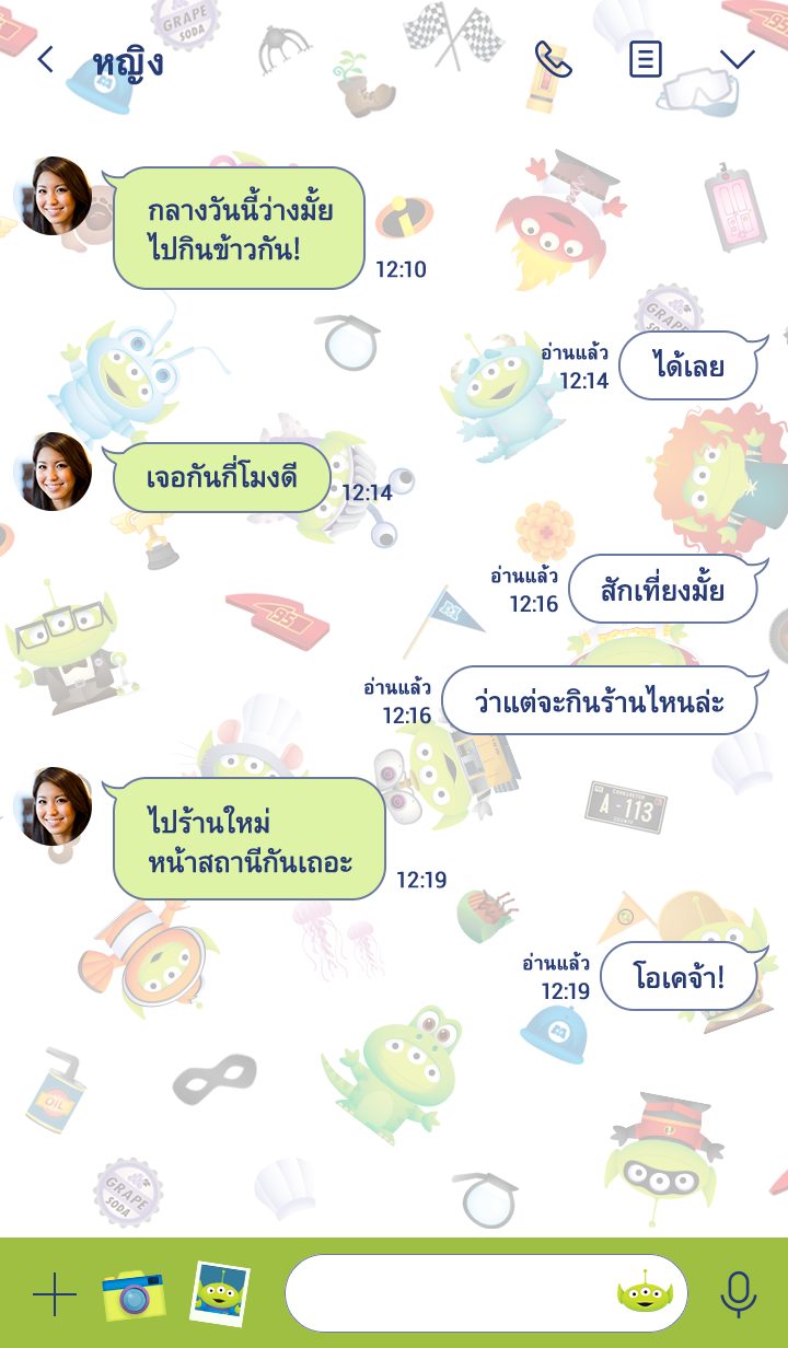 Comment: The aliens from Toy Story are invading your LINE app in this new theme. Disney and Pixar characters are everywhere, but with more eyes than you remember! Updates supported for 180 days after sales end. เอเลี่ยน เอเลียน