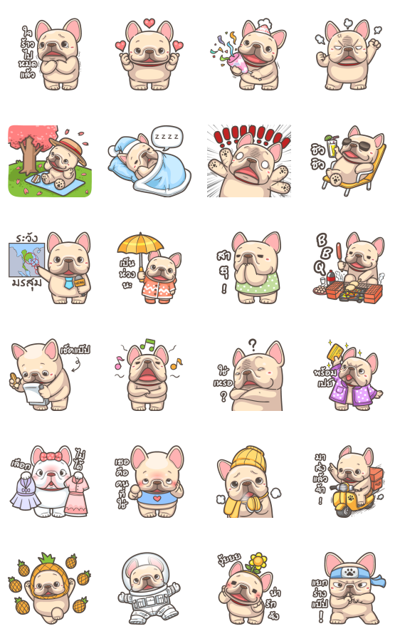 Comment: French Bulldog-PIGU Effect Stickers. An effect sticker set for the naughty French Bulldog PIGU! Effects are played in the chat screen background. Check the device requirements and effect preview on the official blog before purchasing. Effects may not work on all devices.