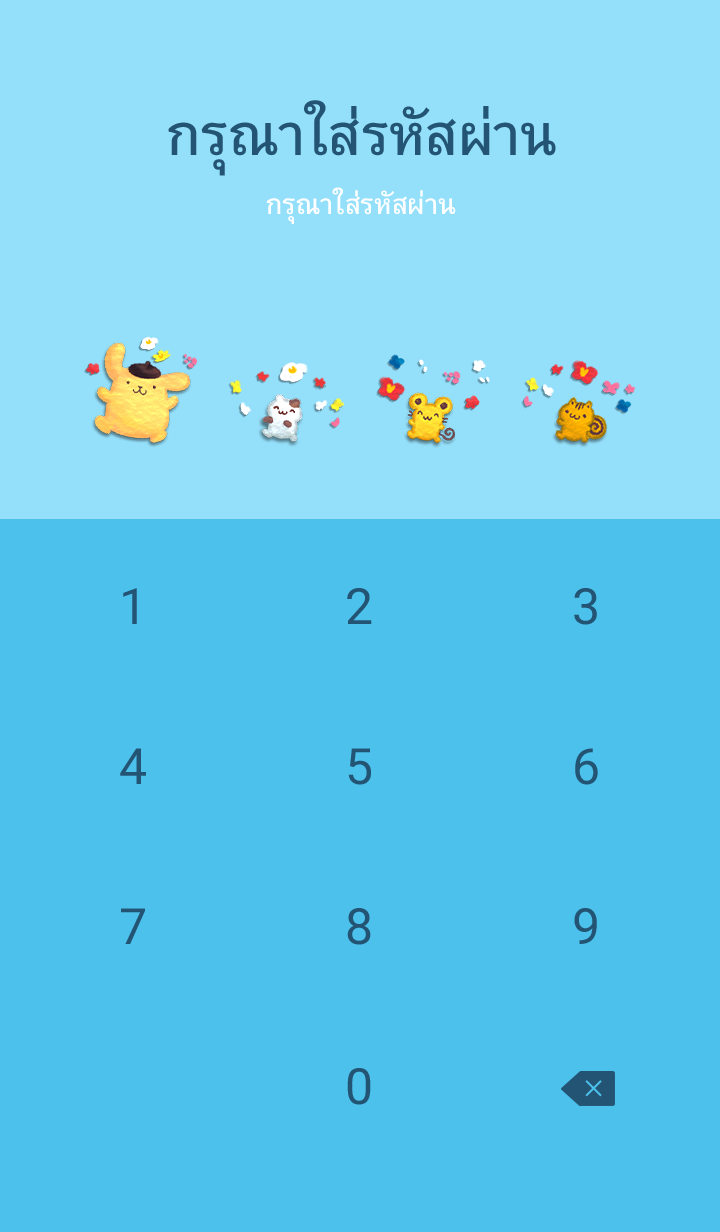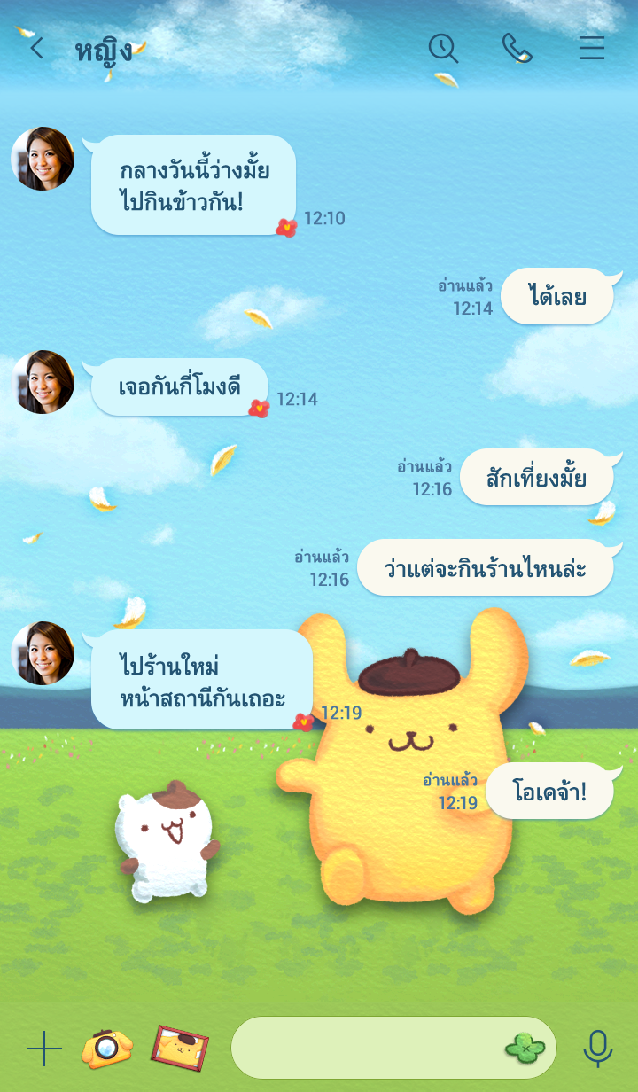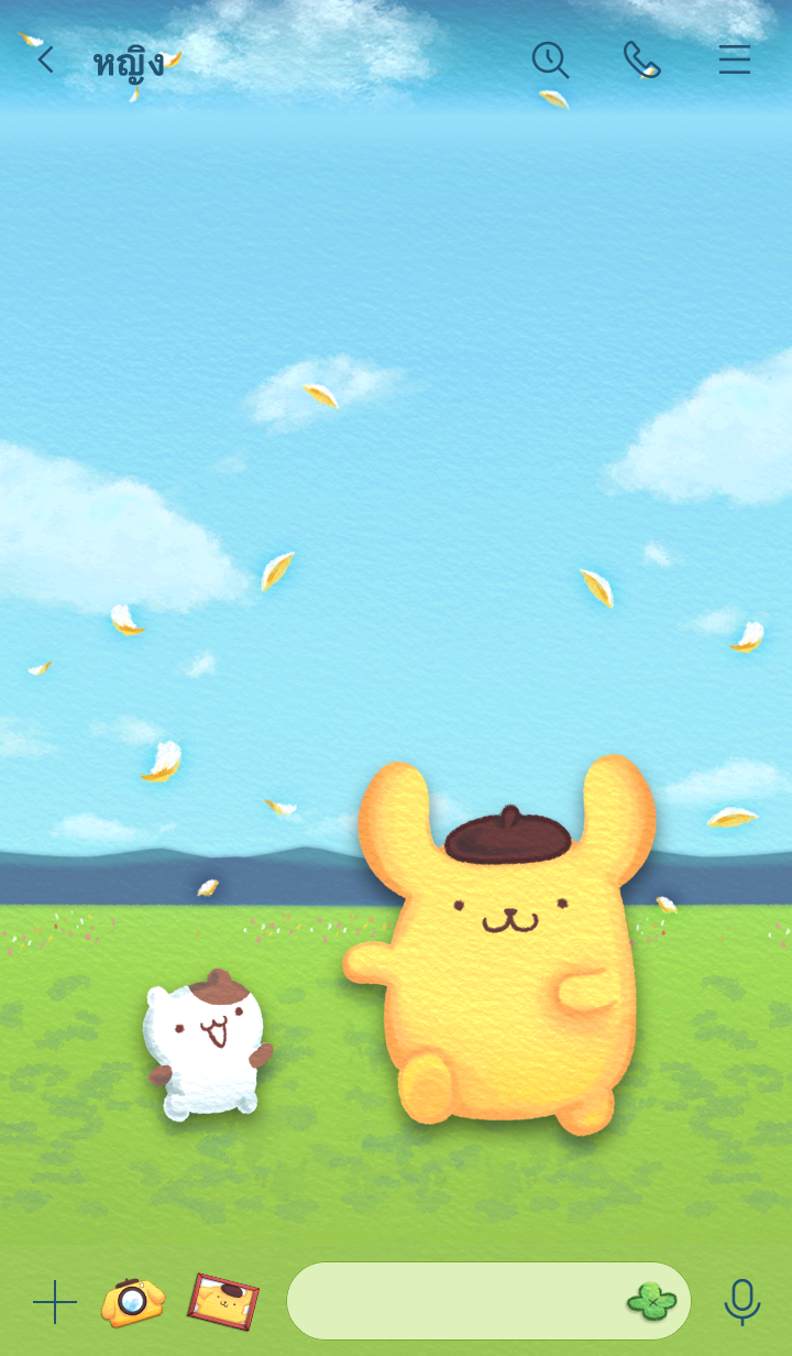 ปอมปอมปุรินและผองเพื่อนกำลังสนุกบนทุ่งหญ้าภายใต้ท้องฟ้าสีครามสดใสกันใหญ่เลย♪ อย่าลืมแวะไปดูสติกเกอร์ "ปอมปอมปุริน ท้องฟ้ายามเย็น" ด้วยนะจ๊ะ♪ * จะมีการอัพเดตธีมเป็นระยะจนถึง 180 วันหลังสิ้นสุดการจำหน่าย