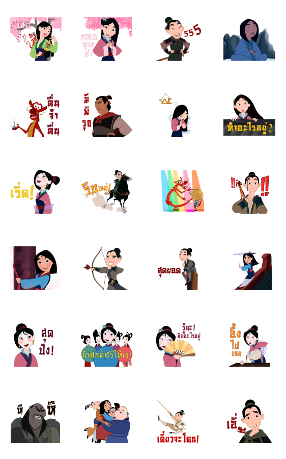 จากแอนิเมชั่นที่ครองใจคนทั้งโลกสู่ไลน์สติกเกอร์สุดน่ารักที่รวมเอาความน่ารักแฝงความกล้าหาญ ดุดัน จากตัวละครที่คุณชื่นชอบอย่าง มู่หลาน ชาง และ มูชู ดาวน์โหลดได้แล้ววันนี้!