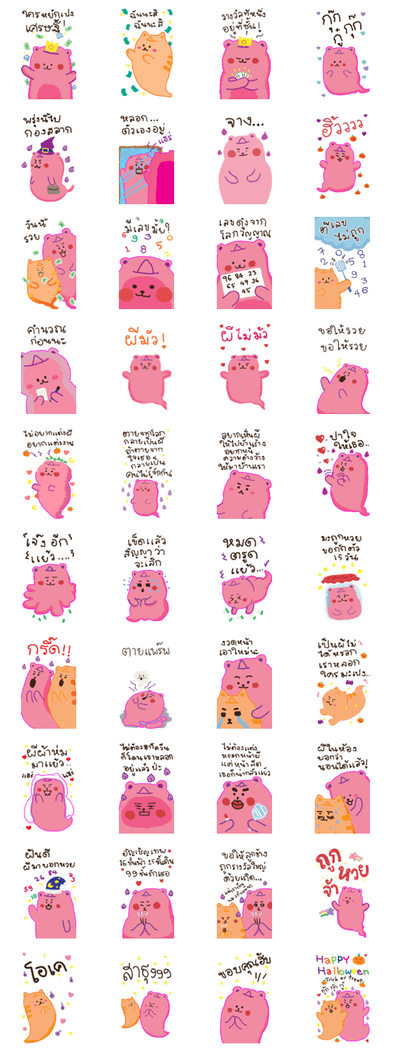 วิญญาณหมี ชอบเล่นหวย มาใบ้หวยให้ทุกคนนะ แฮปปี้ฮาโลวีน! * บิ๊กสติกเกอร์จะแสดงในห้องแชทด้วยขนาดที่ใหญ่กว่าสติกเกอร์ทั่วไป