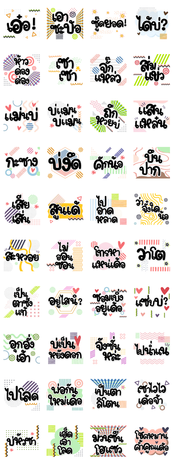 Comment: ESAN Contemporary 2. The combination of ESAN dialects with vernacular patterns and Memphis style contemporary art. Perfectly create your chat group with an elegant mood and tones.
