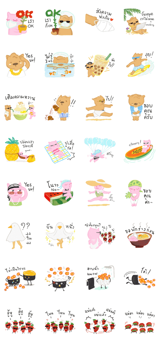 Comment: Hot summer : Pinkcat and Fatdog. Hot summer always good! Cheers and joys with our lovely friends, little strawberries and sushi duo gang~ yay!