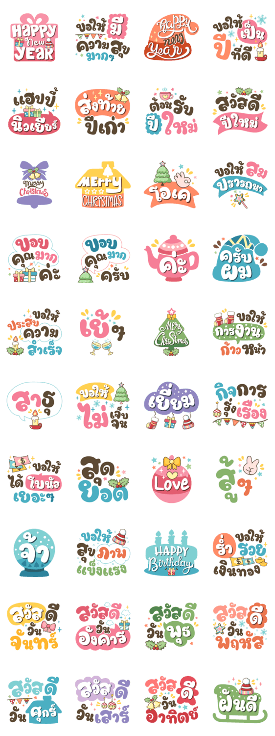 สวัสดีปีใหม่ ขอให้มีความสุข ขอให้เป็นปีที่ดี ส่งท้ายปีเก่า เมอร์รี่คริสต์มาส สมปรารถนา ประสบความสำเร็จ การงานก้าวหน้า สุขภาพแข็งแรง ร่ำรวยเงินทอง สาธุ