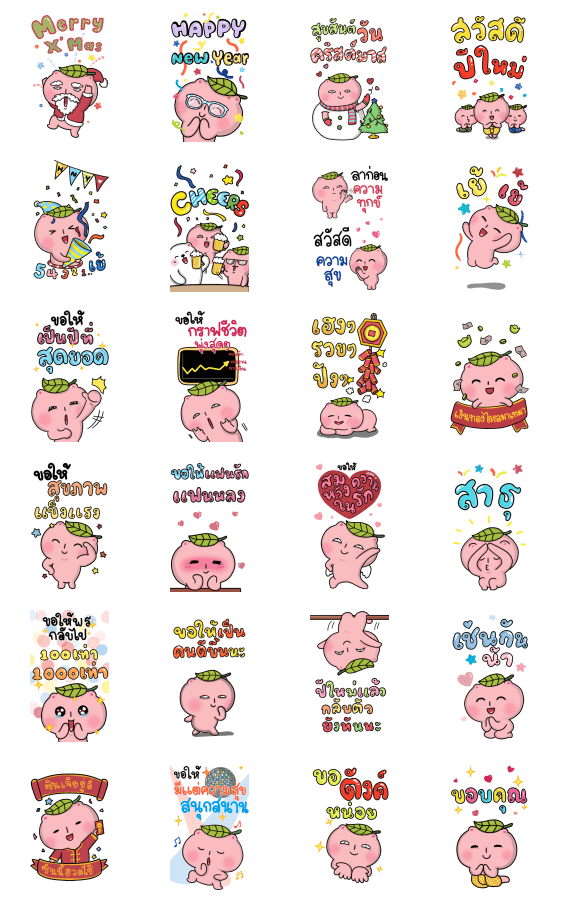 Comment: Mojicha Holiday Big Stickers By BlueBert Studio. Mojicha and the gang are ready to send you blessings and love on Christmas day, New Year's day and many more! บิกสติกเกอร์