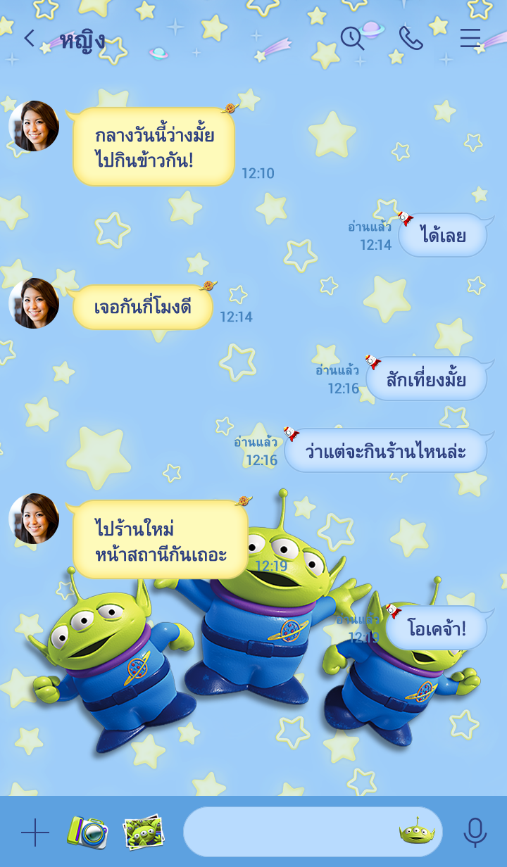 ธีมเอเลี่ยน ตัวละครสุดฮอตจากซีรีส์ทอยสตอรี่มาแล้วจ้า! มีแต่เอเลี่ยนและดาวละลานตาเต็มไปหมด น่ารักม้ากมาก♪ * จะมีการอัพเดตธีมเป็นระยะจนถึง 180 วันหลังสิ้นสุดการจำหน่าย