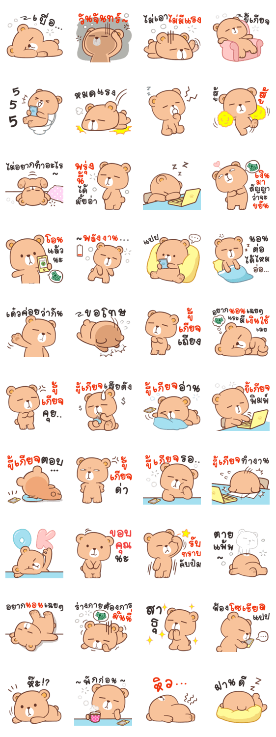 สติกเกอร์น่ารักน้องหมีจอมขี้เกียจ กับคำพูดในชีวิตประจำวัน