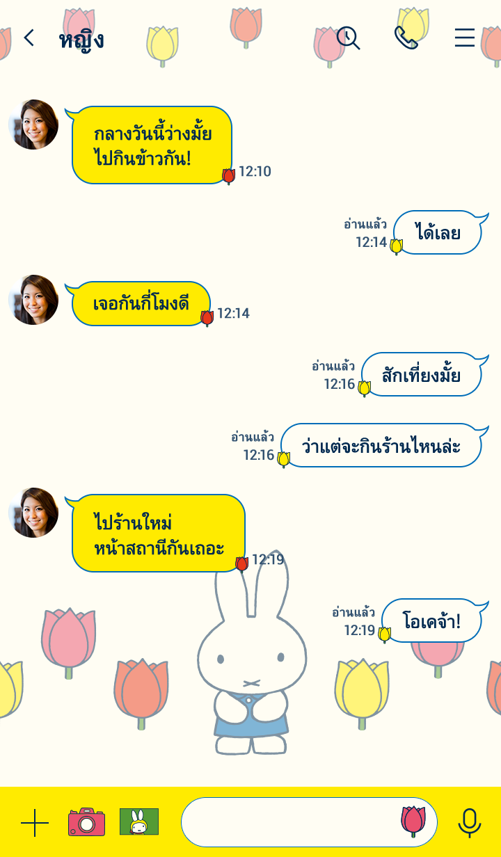 ธีมลาย miffy และดอกทิวลิป! miffy น้อยอยู่ท่ามกลางดอกทิวลิปสีสันสดใสเข้ากับบรรยากาศฤดูใบไม้ผลิสุดๆ♪ * จะมีการอัพเดตธีมเป็นระยะจนถึง 180 วันหลังสิ้นสุดการจำหน่าย