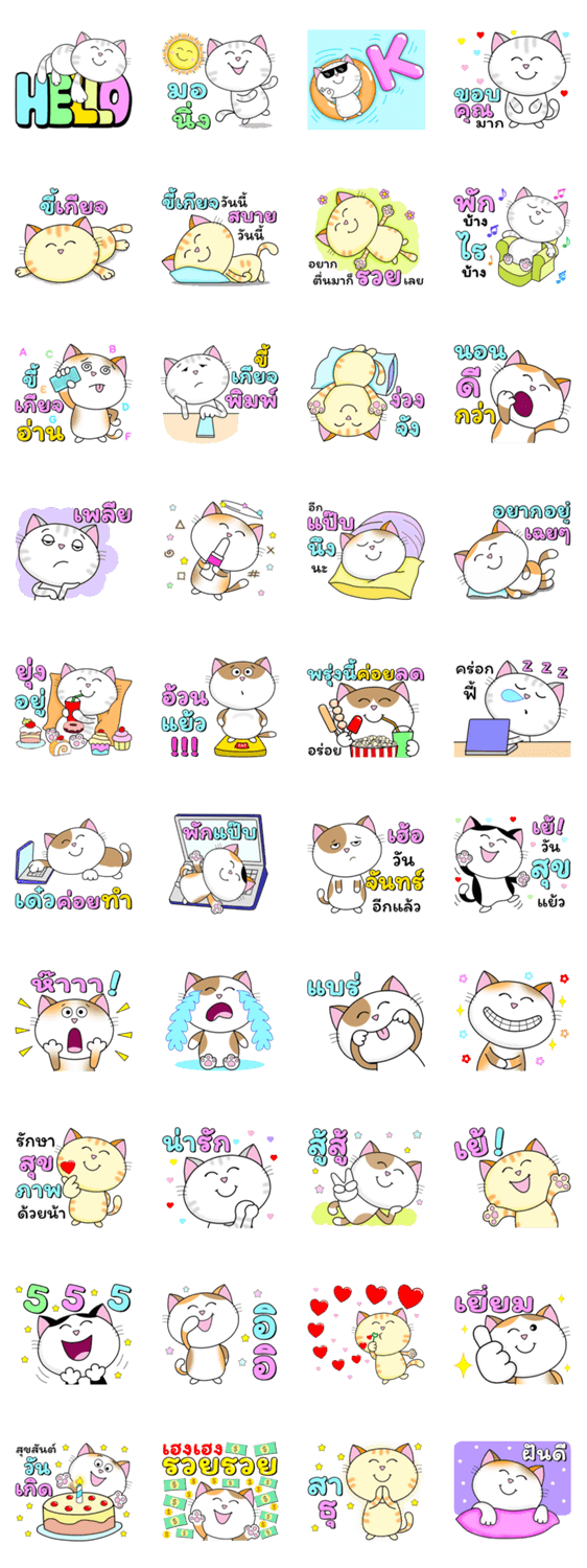แม้ ขี้เกียจ ก็แชทสนุกได้ทุกวัน กับเหล่าเหมียว จ้ำม่ำ อักษรคำโต อ่านง่าย น่ารัก สีสดใส ส่ง คำทักทาย ความรัก ห่วงใย กำลังใจ เชียร์ ยินดี อวยพร วันเกิด ส่งความสุข