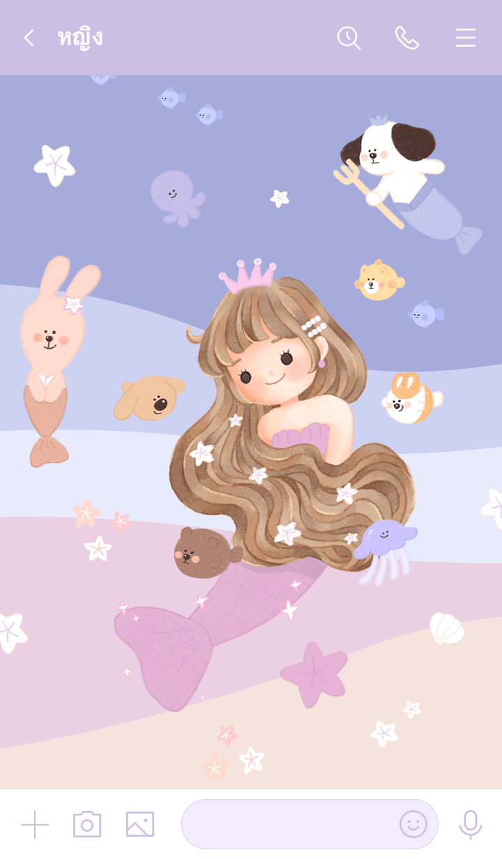ธีมไลน์วาฬเกยตื้นกับฉลามน้อย |