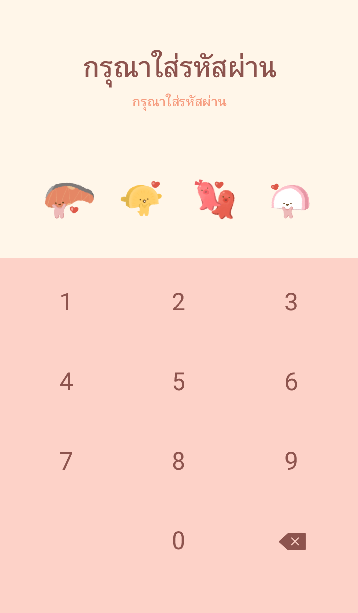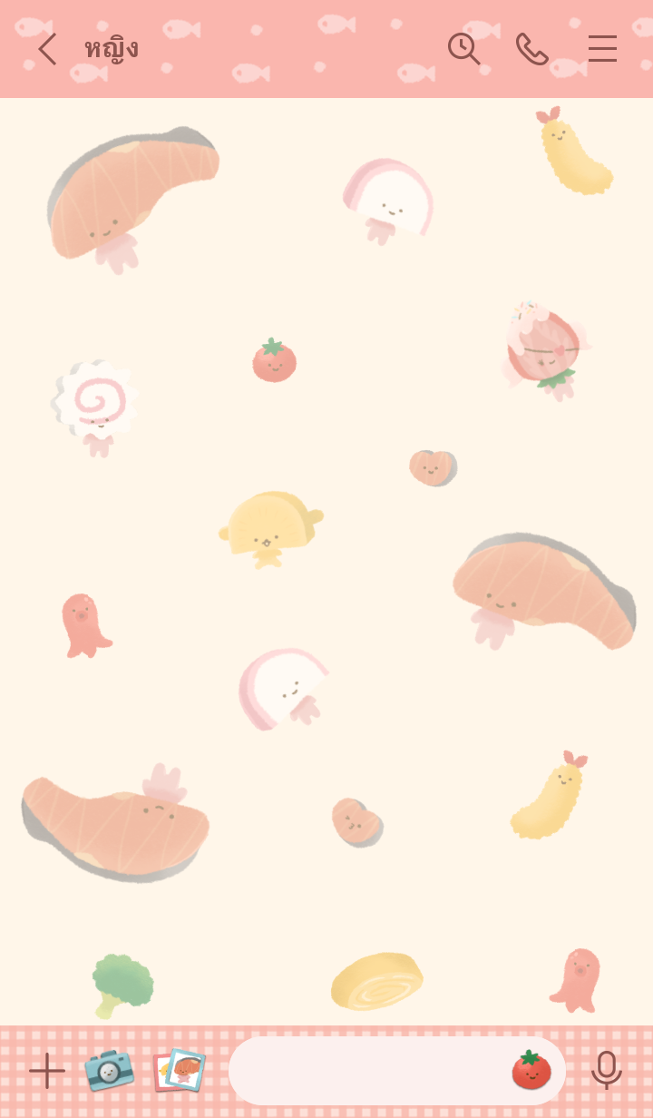 Comment: Kirimichan the sliced salmon is bringing all their friends to your app! This theme will have you craving a delicious meal every time you open LINE. Updates supported for 180 days after sales end.