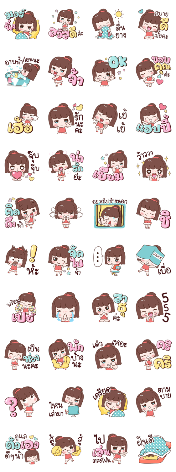 มอร์นิ่ง สวัสดี ตื่นยาง สบายดีมั้ย อาบน้ำก่อนนะ จ้า โอเค ขอบคุณ เฮ้อ รัก เย้ แฮปปี้ จุ๊บ น่ารัก เยี่ยม ว้าว คิดถึง อยากไปข้างนอก ชิ จัดไป เบื่อ พร้อมเปย์ สาธุ