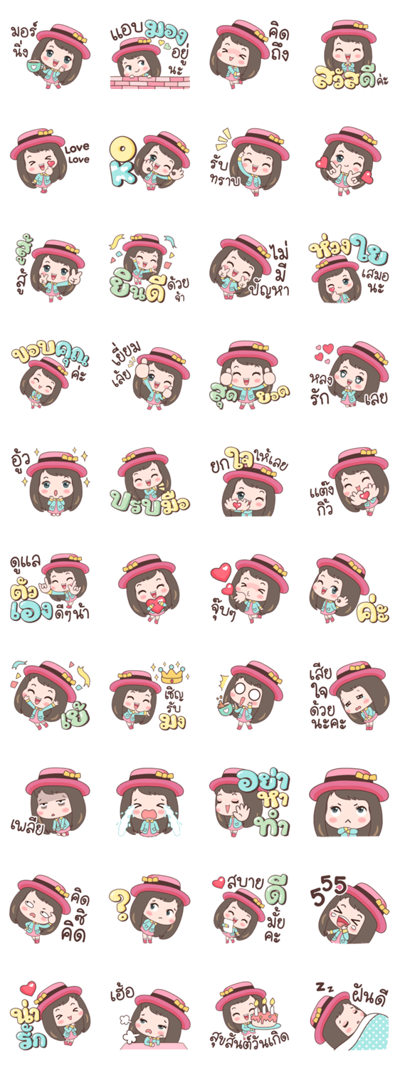 มอร์นิ่ง แอบมองอยู่ คิดถึง สวัสดี เลิฟ โอเค รับทราบ สู้ ๆ ยินดีด้วย ไม่มีปัญหา ห่วงใยเสมอ ขอบคุณ เยี่ยม สุดยอด หลงรัก อู้ว ปรบมือ ยกใจให้เลย แต๊งกิ้ว