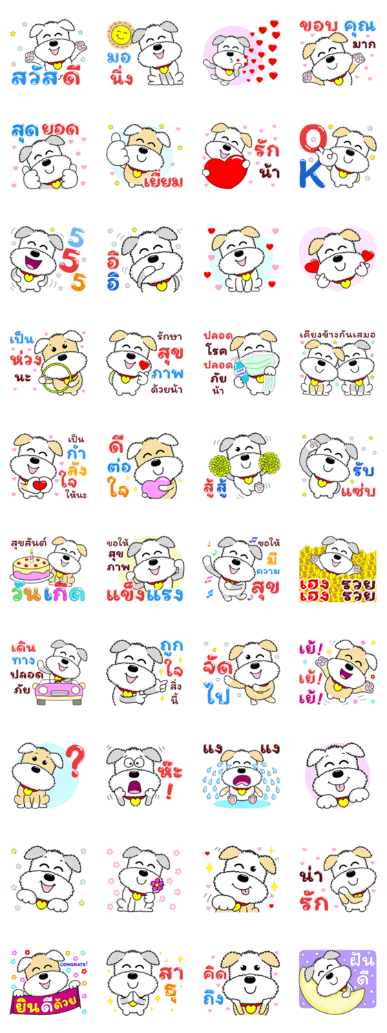 น้องๆ ลูกมะหมา คิ้วท์ๆ มาพร้อมอักษรยักษ์ คำโต สุภาพ ทักทาย ส่งความรัก ความห่วงใย กำลังใจ เชียร์ ยินดี อวยพร วันเกิด ใช้ได้ทุกเทศกาล ส่งความสุข ให้แชทสนุก ทุกวัน