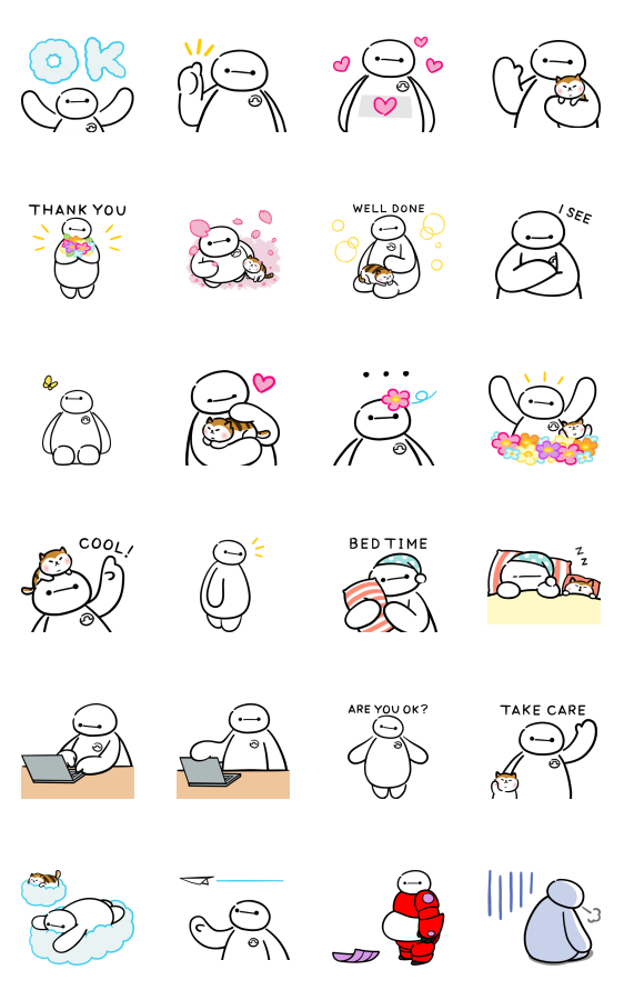 สติกเกอร์แสนอบอุ่นของเบย์แม็กซ์และโมจิจาก Big Hero 6 ภาพยนตร์แอนิเมชันสุดฮิตของดิสนีย์! สติกเกอร์อบอุ่นน่ารักขนาดนี้ส่งให้ใครก็ต้องดีใจแน่นอน♪