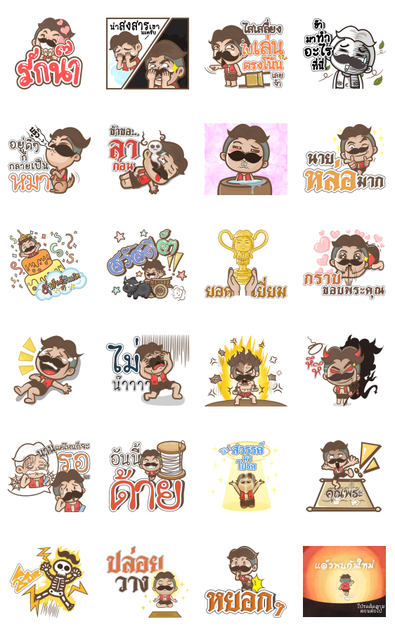 สักวามาแล้วหนา น้าหนวดเข้ม จัดมาเต็มติ๊กเกอร์ใหม่ให้ทุกท่าน มาวันนี้มีของใหม่มาให้กัน แชทของท่านมันส์กันได้ทุกวันเอย สติกเกอร์เอฟเฟกต์คือสติกเกอร์ที่เคลื่อนไหวบนพื้นหลังแชท อ่านรายละเอียดเพิ่มเติมและดูตัวอย่างการใช้งานจริงได้ที่ลิงก์ LINE TODAY ด้านล่างก่อนการซื้อ *สติกเกอร์อาจทำงานได้ไม่สมบูรณ์บนอุปกรณ์บางรุ่น