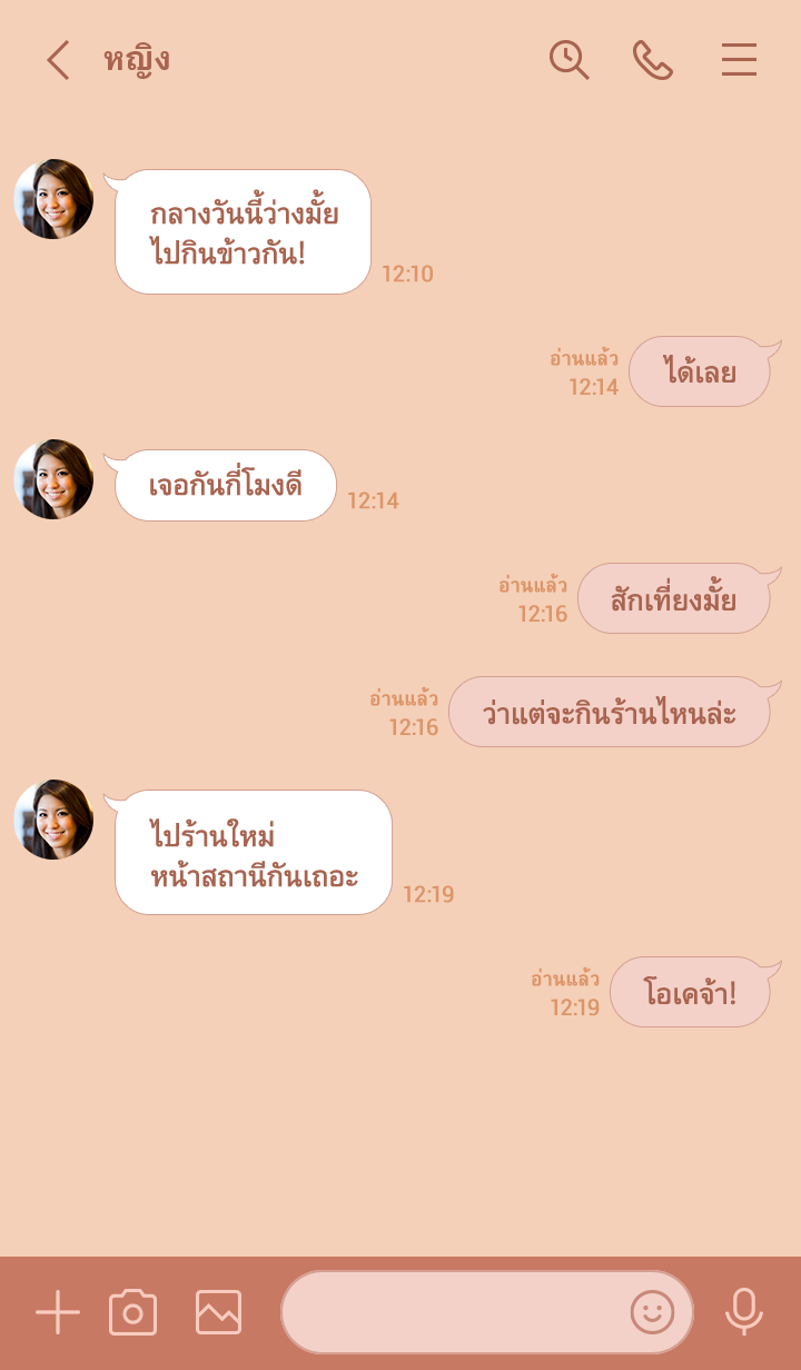 เปลี่ยนบรรยากาศให้กับแชทของคุณด้วยธีมสีส้มพาสเทลแซมสีแดงอิฐกันหน่อยไหม♪ * จะมีการอัพเดตธีมเป็นระยะจนถึง 180 วันหลังสิ้นสุดการจำหน่าย