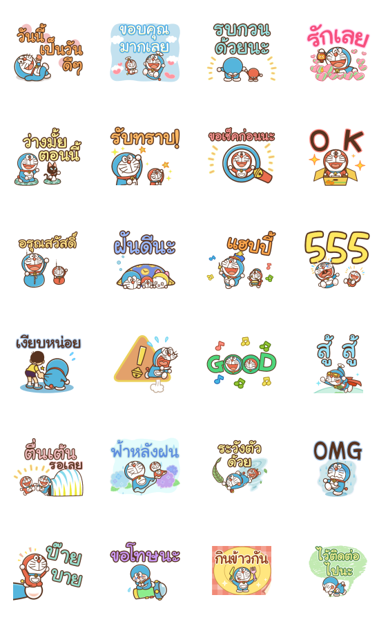 สติกเกอร์ดุ๊กดิ๊กจากโดราเอมอนและมินิโดราที่มาพร้อมข้อความไซส์จัมโบ้สุดบิ๊ก มีแต่คำพูดดีๆ ฟังแล้วชื่นใจ ใช้ง่ายในทุกโอกาส♪ อยากบอกอะไรเพื่อนก็ให้โดราเอมอนและเพื่อนๆ ช่วยได้เลย!