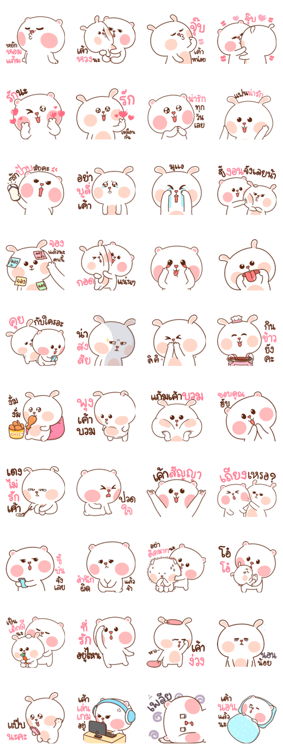 สติ๊กเกอร์ไลน์ตัวกลม หมีนุ่มกับต่ายนิ่ม |