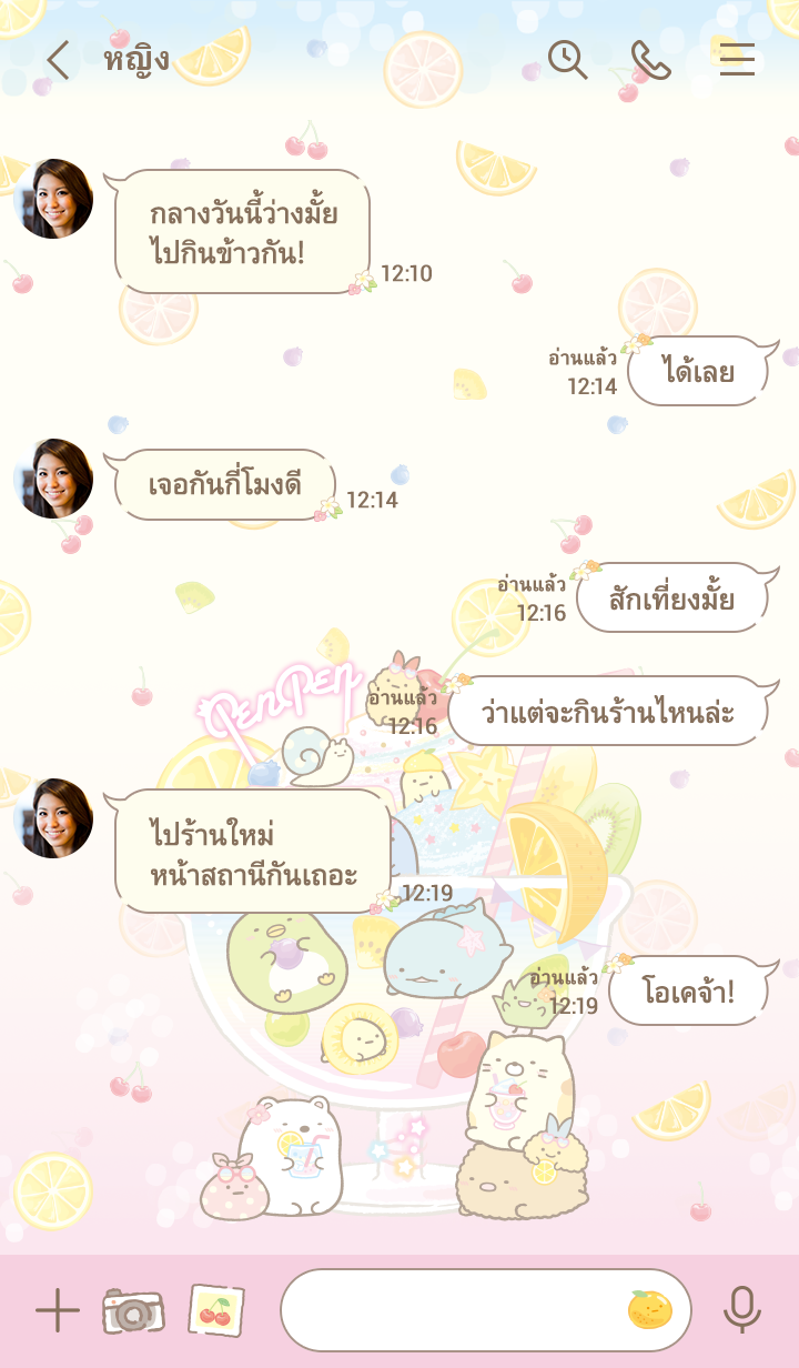 ธีมชาว Sumikko ที่กำลังสนุกกันในวันหยุด ห้อมล้อมด้วยผลไม้น่าอร่อย * จะมีการอัพเดตธีมเป็นระยะจนถึง 180 วันหลังสิ้นสุดการจำหน่าย