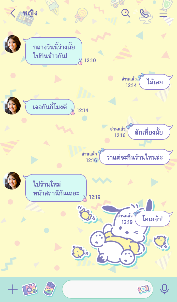 ธีม Pochacco แสนน่ารักในสีมินท์ รายล้อมด้วยสิ่งของสไตล์เรโทรป๊อบมากมาย♪ แค่หันหลังให้ยังน่ารักจนอดยิ้มไม่ได้♪ * จะมีการอัพเดตธีมเป็นระยะจนถึง 180 วันหลังสิ้นสุดการจำหน่าย