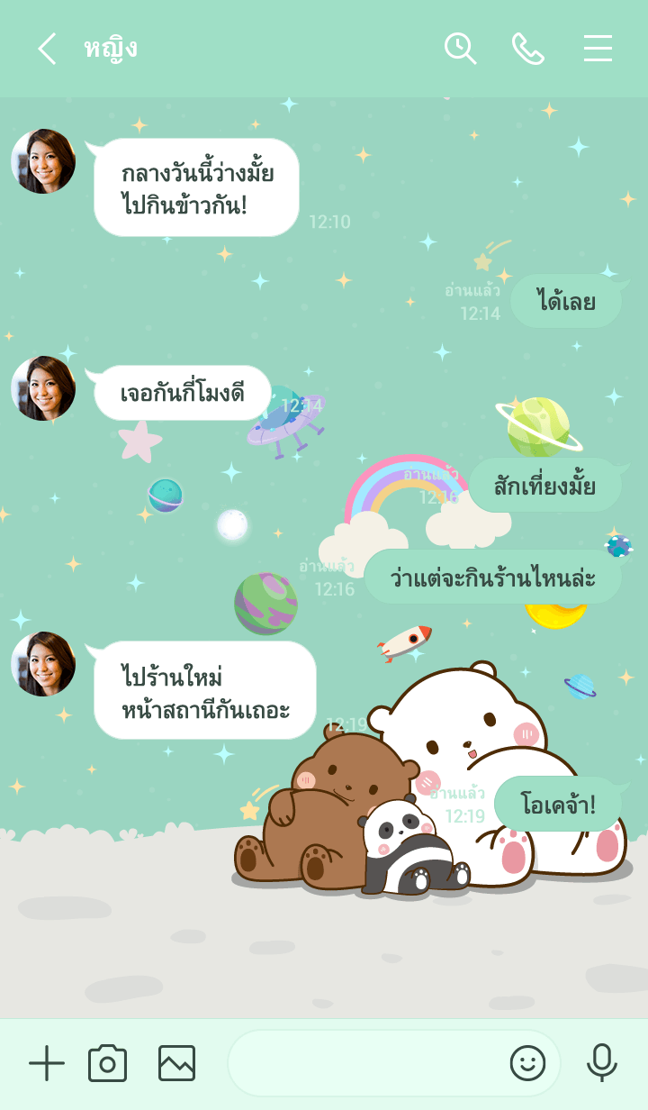ธีมไลน์หมีฮาเฮ กาแล็กซี่ สีน้ำตาล |