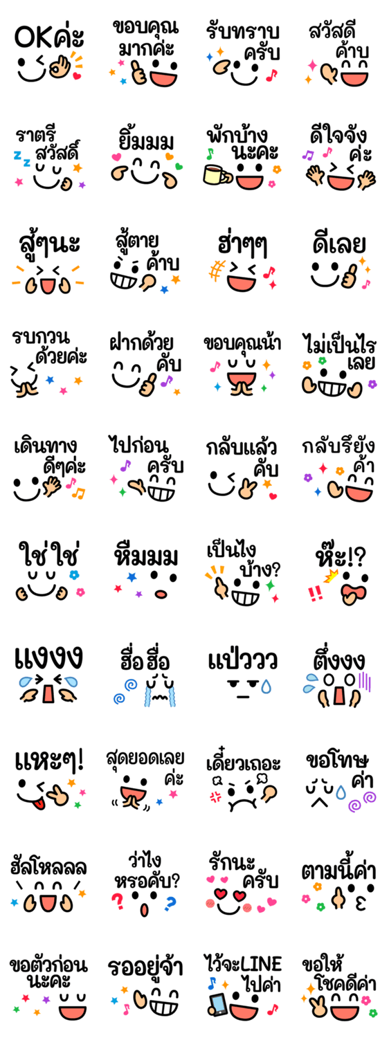 สติกเกอร์ตัวอักษรใหญ่อ่านง่าย ใช้ได้ทุกคนอย่างสะดวก มีคำสุภาพเป็นพื้นฐาน และคำที่ใช้บ่อยครบครัน (ผู้วาด O-Jirou)