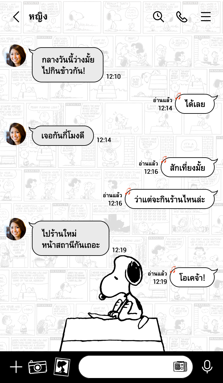 ธีมไลน์Snoopy Comic Strips (ขาว) |