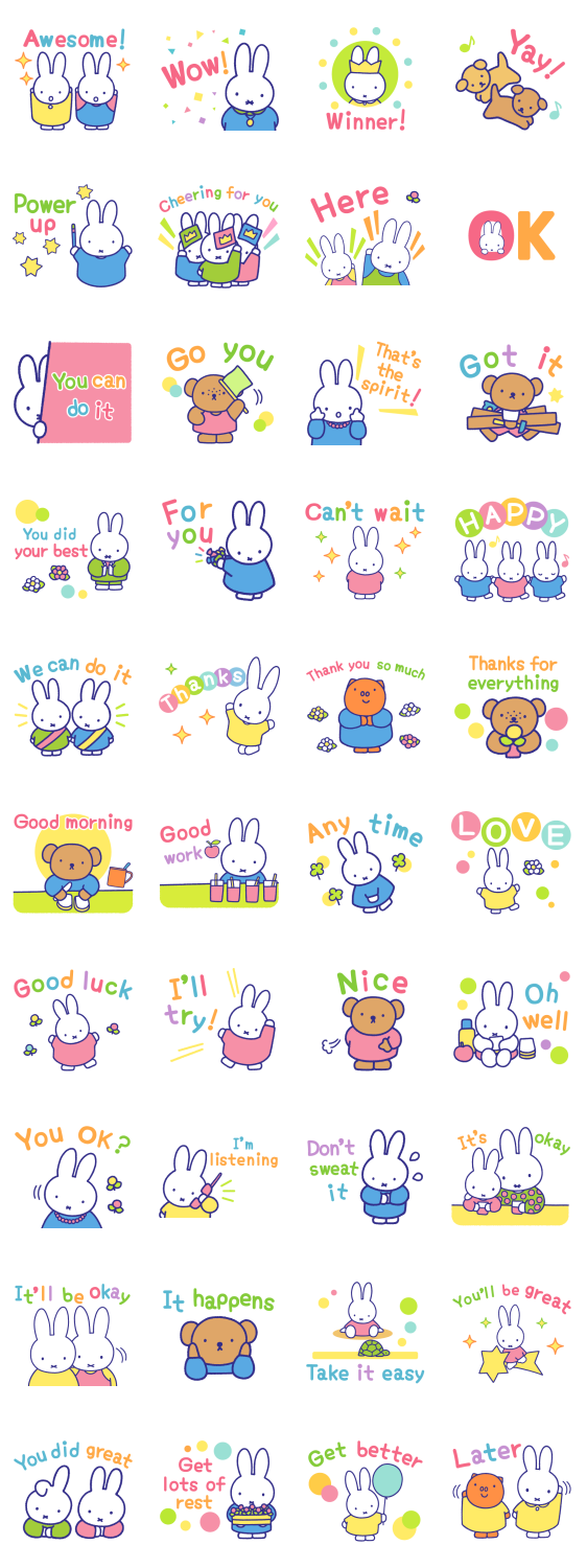 Comment: Motivational miffy Stickers. miffy is here to motivate you! When you're too busy, too tired, or working too hard, send some of these adorable stickers to put some pep back into your step.