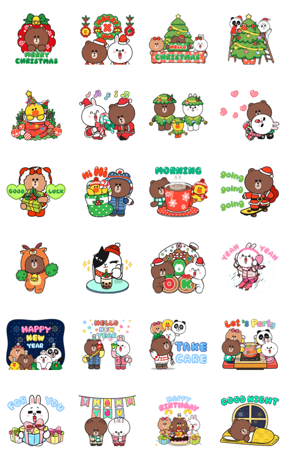 บราวน์และผองเพือนมา สุขสันต์วันคริสต์มาส และสวัสดีปีใหม่ มาสงความสุขให้ทุกคนในเทศกาลแหงความสุขนี้ แบบใหญ่เต็มจอ * สติกเกอร์ในแคมเปญ "มาสร้างสติกเกอร์ BROWN & FRIENDS กัน!"